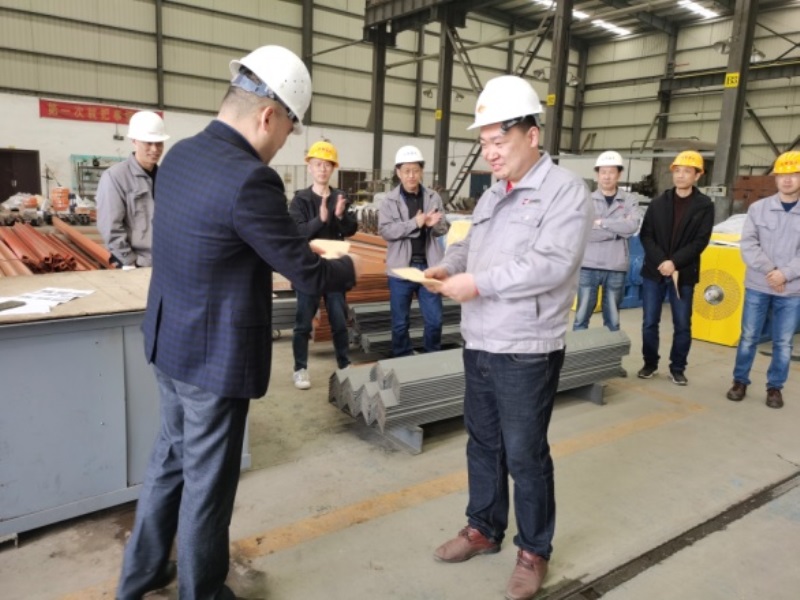 2021年4月2日中午12:15分,天奇藍(lán)天公司高管及先進(jìn)班組和節(jié)約獎獲得者近30人在三號廠房“橫梁班”現(xiàn)場召開了一場別開生面的表彰大會。 首先,由公司總經(jīng)理章愛前對三月份在“先進(jìn)班組”考核中優(yōu)勝的“許世艷班組”和“谷昆明班組”授予了先進(jìn)班組流動紅旗和獎金,并對2020年受股份公司表彰的姚中華、翟宏維、滕軍波、李文四名標(biāo)兵頒發(fā)榮譽(yù)證書和獎金。章總還對在三月份節(jié)約材料專項工作中表現(xiàn)突出的周勇、李磊等六名同志頒發(fā)獎金。 我公司在今年伊始,面對原輔材料漲價和用工緊張的雙重壓力,積極應(yīng)對,著實圍繞生產(chǎn)成本練習(xí)內(nèi)功,號召廣大員工從節(jié)約“一度電”、“一滴水”、“一寸鐵”入手,自覺參與節(jié)約原材料活動,并及時做好該次活動的組織和評選工作。 此次我公司將先進(jìn)表彰會的會場移到生產(chǎn)車間一線,就是要號召更多的員工投入到生產(chǎn)勞動競賽和節(jié)約原材料這兩項活動當(dāng)中去,積極弘揚(yáng)主人翁精神和愛崗敬業(yè)的主旋律,為全面完成今年的生產(chǎn)經(jīng)營指標(biāo)而努力工作。 |