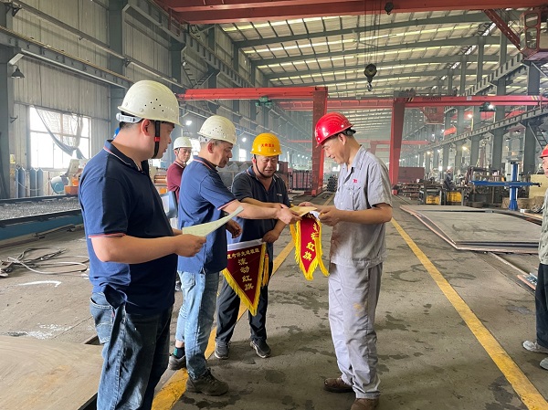 6月2日上午11時(shí),天奇藍(lán)天公司在生產(chǎn)現(xiàn)場(chǎng)召開了一場(chǎng)表彰大會(huì)。 首先,由公司總經(jīng)理助理施樂勤對(duì)五月份在“先進(jìn)班組”考核中優(yōu)勝的“下料車間曹軍班組”和“裝配朱長生班組”授予了先進(jìn)班組流動(dòng)紅旗和獎(jiǎng)金,并對(duì)2021年受股份公司表彰的“優(yōu)秀員工”阮德明、朱風(fēng)巧及“崗位標(biāo)兵”谷昆明、姚鎮(zhèn)四名同志頒發(fā)榮譽(yù)證書和獎(jiǎng)金。 企業(yè)穩(wěn)健發(fā)展離不開全體員工的辛勤付出,希望受表彰的優(yōu)秀員工,戒驕戒躁,發(fā)揮模范作用,在今后的工作中再接再厲、全力以赴、爭創(chuàng)佳績。愿和諧、互勉、共同進(jìn)步的氣氛長存;讓企業(yè)文化扎根在每一位員工的心中。