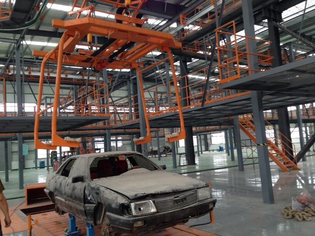 由公司自主研發(fā)設(shè)計、制造和安裝的報廢汽車拆解線是國家高技術(shù)研究發(fā)展計劃(863計劃)課題任務(wù)。報廢汽車拆解線內(nèi)容主要包括環(huán)保預(yù)處理線、油液抽取空中線、發(fā)動機(jī)拆取空中線、地面拆解板鏈線以及典型零部件分拆線和其他拆解設(shè)備。有效提高拆解效率,真正實現(xiàn)報廢汽車零部件深度精細(xì)拆解,以帶動再生資源回收利用產(chǎn)業(yè)的整體技術(shù)水平的提高和企業(yè)的升級轉(zhuǎn)型。
